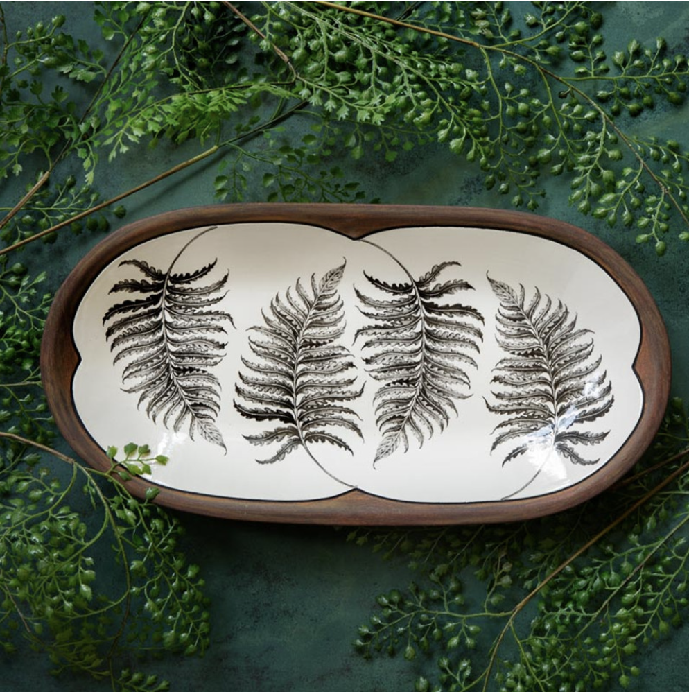 Handmade Ceramics are functional works of art, crafted from earthenware and glazed with non-toxic, low-fire glazes. Hand wash only. They are not to be placed in the dishwasher, oven, or microwave. Color option refers to the glaze color on the rim and back of the platter.